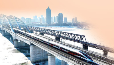 春运期间,复兴号高寒智能动车组奔驰在哈齐高铁松花江特大桥上。方圆陈名摄影报道